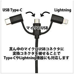 ●マイクロUSBコネクタに変換コネクタを被せることでLightning・USB Type−Cの機器にも対応します。